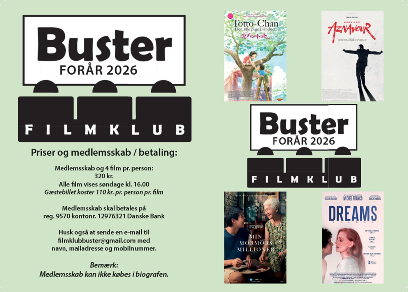 Filmklubben Buster viser film, der repræsenterer et bredt spekter af nationaliteter og genrer. "Højkvalitetsfilm".